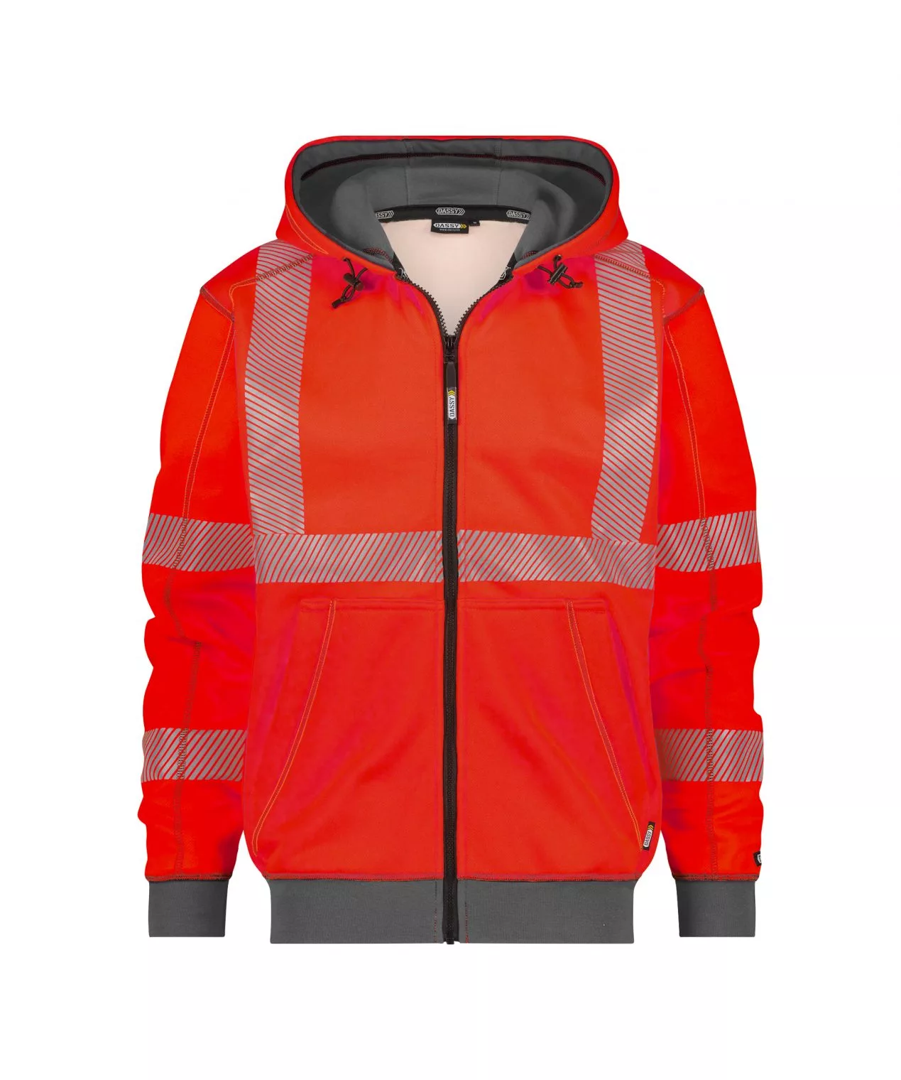Der DASSY ® Safety Hivis Evans-Hoodie ist ein idealer Begleiter für alle, die Komfort, Wärme und Sichtbarkeit schätzen. Dieser Hoodie ist in fünf leuchtenden Farben erhältlich und verfügt über 50 mm breite, segmentierte Reflexstreifen, die für eine hohe Sichtbarkeit sorgen. Der Hoodie hat einen langen Reißverschluss, der das An- und Ausziehen erleichtert, sowie zwei praktische Taschen mit Reißverschluss, in denen Sie Ihre Wertsachen sicher verstauen können. Die zweilagige Kapuze mit elastischem Kordelzug schützt Sie vor Wind und Kälte. Die Ärmelbündchen und der Bund sind aus Strick gefertigt und bieten eine angenehme Passform. Der Hoodie ist in den Größen XS bis XXXL erhältlich. Die Größen XS und S bieten Schutzklasse 2, die restlichen Größen Schutzklasse 3. Der Hoodie ist mit einer Stickerei in Kontrastfarbe verziert, die ihm einen modischen Touch verleiht. Der DASSY ® Safety Hivis Evans-Hoodie ist ein perfekter Hoodie für alle, die sich bei der Arbeit wohlfühlen und auffallen wollen.
