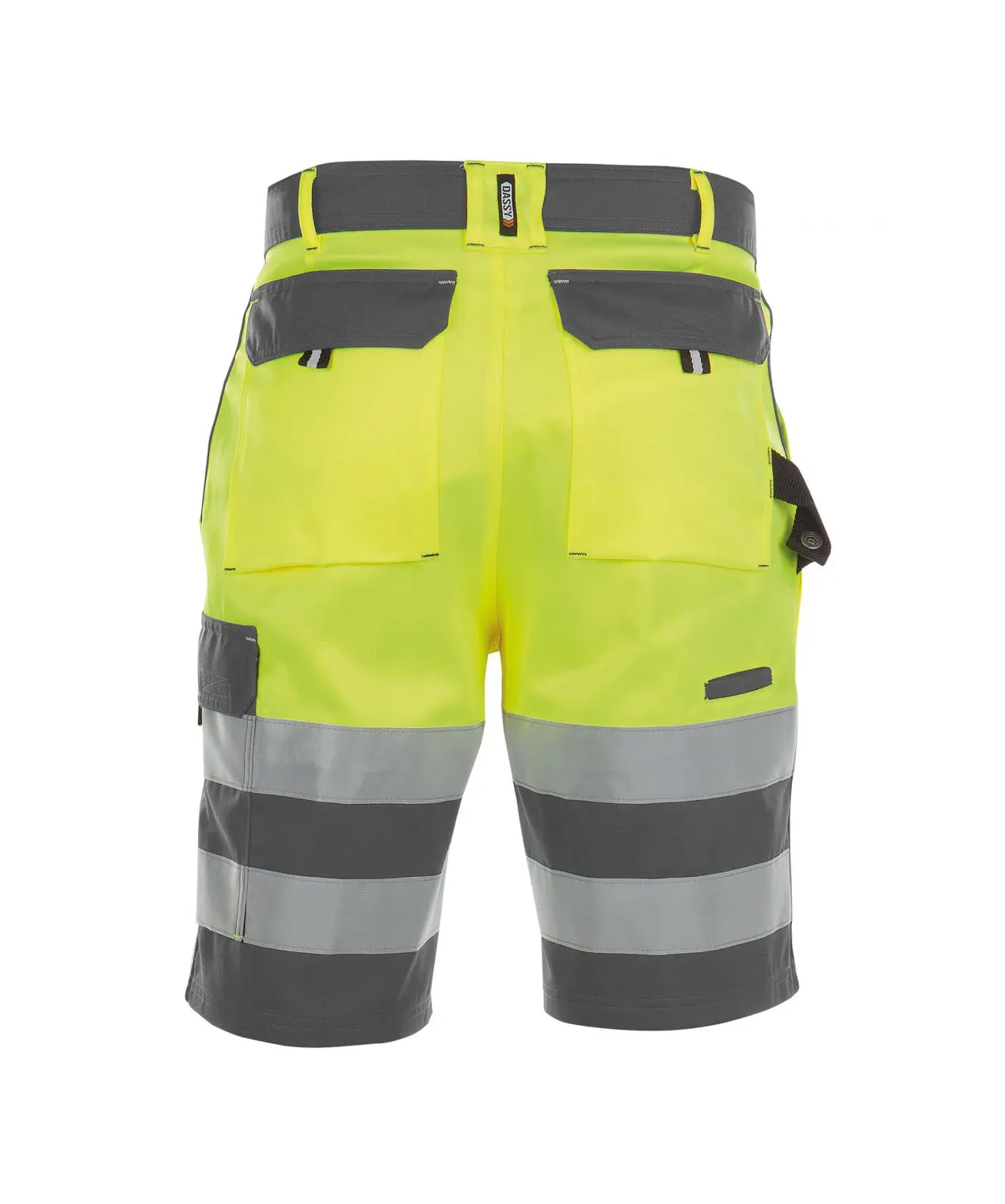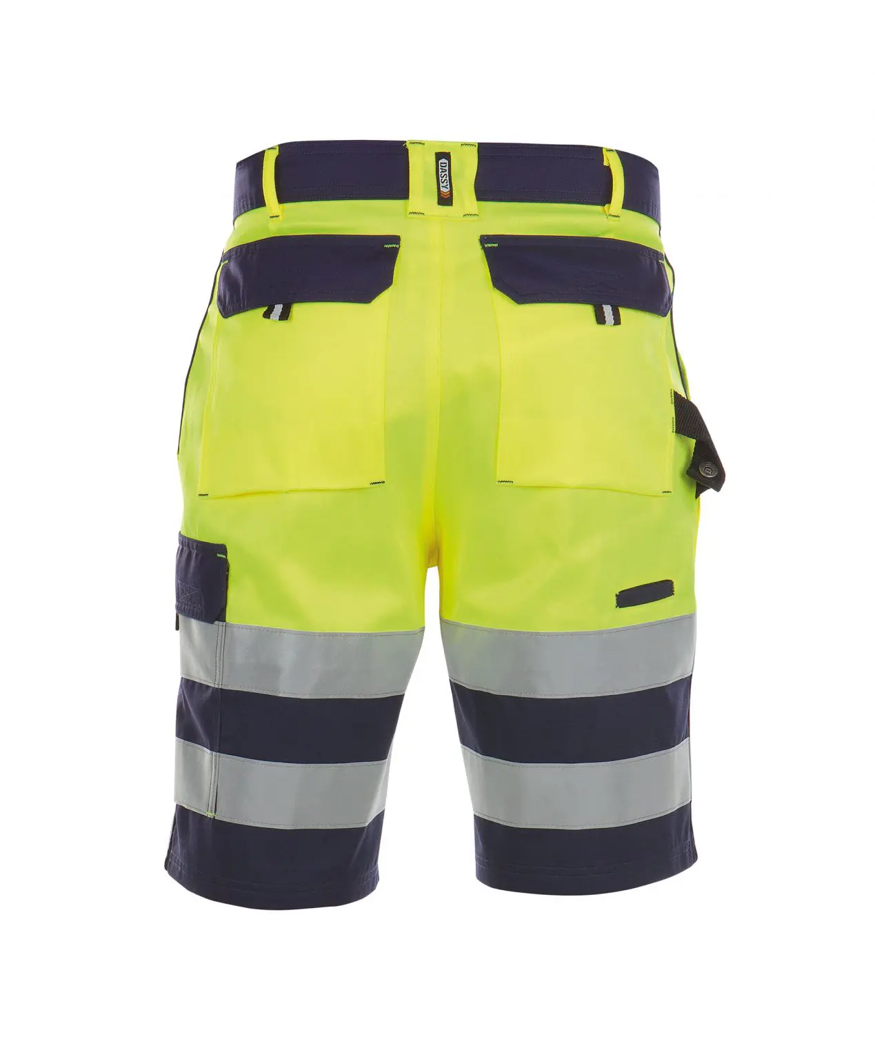 Dassy Venna kurze Warnschutz Arbeitshose bietet eine Warnschutzklasse 1 und viele praktische Taschen. sowie eine verstellbare Rückenelastik für perfekten Sitz.Die 3-fachen Kappnähte stehen für lange Haltbarkeit.