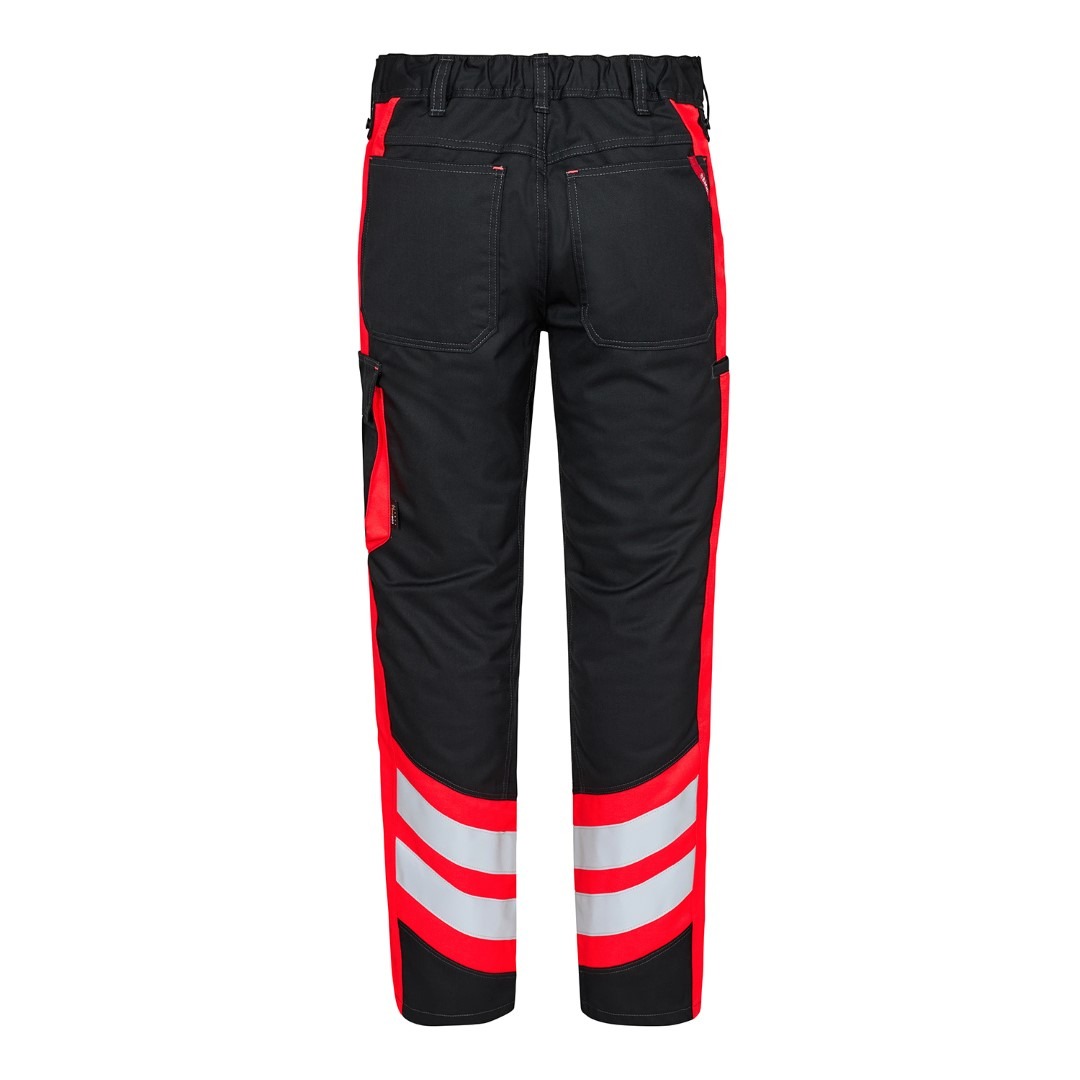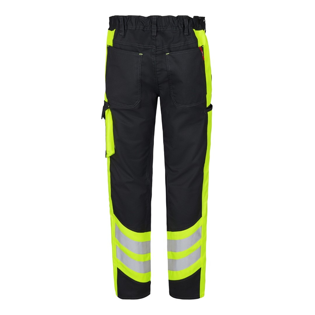 Funktionelle Bundhose mit vielen praktischen Details. Optimale Passform, u. a. sorgen ergonomisch geformte Knie und Panel an der Innennaht für noch mehr Tragekomfort. Das Innennaht-Panel aus extrem elastischem, atmungsaktivem Material sorgt für besonders hohen Tragekomfort. Taillengummizug am Rücken, der für gute Passform sorgt und die Hose an ihrem Platz hält, z. B. beim Aussteigen aus dem Auto. D-Ring vorne z. B. für eine ID-Karte. Zwei geräumige, schräg sitzende Einschubtaschen vorne. Zwei Gesäßtaschen. Auf der linken Seite ist eine Schenkeltasche mit Patte sowie separater Handytasche. Auf der rechten Seite gibt es eine Innentasche, in der man z. B. einen Zollstock aufbewahren kann. Verstärkter Kniebereich. Die Hose ist ohne EN ISO 20471 Zertifizierung, sorgt jedoch durch Reflexstreifen unten um die Beine herum und Details aus fluoreszierendem Material für mehr Sichtbarkeit und ist somit eine ausgezeichnete Wahl für Fahrer, Servicemitarbeiter, Lagermitarbeiter und Spediteure, die Wert auf Sicherheit und Komfort legen.