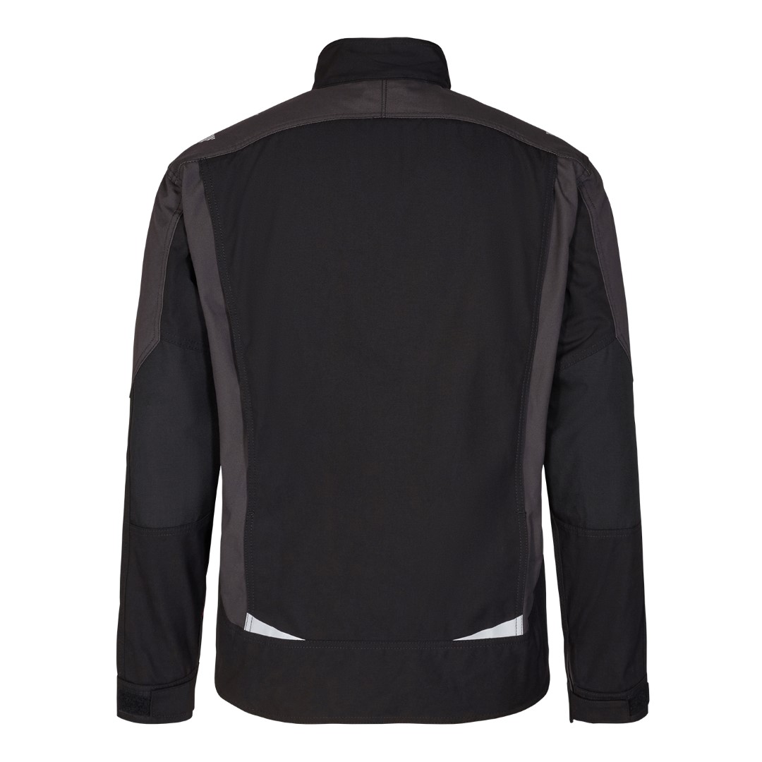 Funktionelle Arbeitsjacke mit vielen Details. Verlängerte Rückenpartie mit Bewegungsfalte. Verdeckter Reißverschluss vorn. Verstärkte Ellbogen. Zwei geräumige Einschubtaschen. Zwei Brusttaschen mit Patte – die rechte mit Schlaufe und D-Ring zur Befestigung einer ID-Karte, die linke mit zusätzlicher Reißverschlusstasche fürs Handy. Zwei große Innentaschen mit Klettverschluss. Verstellbare Ärmelbündchen. Reflexstreifen auf den Schultern sowie vorne und hinten für mehr Sichtbarkeit. Für Industriewäsche geeignet.