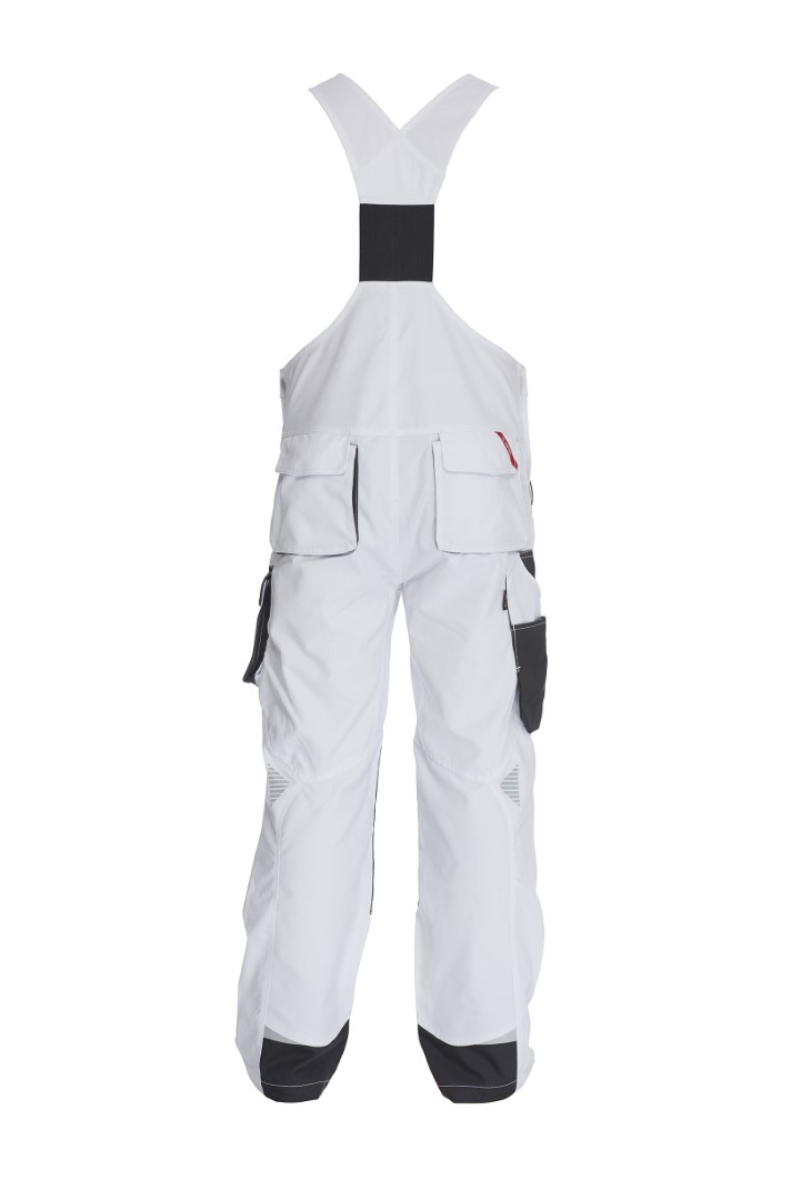 Funktionelle Latzhose mit vielen Details. Optimale Passform, u. a. sorgen ergonomisch geformte Knie und Panel an der Innennaht im Schritt für mehr Bequemlichkeit. Breites, elastisches Rückenteil und verstellbare Träger. Außentasche im Latz mit zusätzlichem Einschub für Stifte. Unter der Taschenpatte befindet sich eine Schlaufe mit D-Ring zur Befestigung einer ID-Karte. Große Reißverschlusstasche auf der Rückseite der Patte. Zwei geräumige, schräg sitzende Einschubtaschen vorne. Zwei geräumige Gesäßtaschen mit Patte und Klettverschluss. Große Schenkeltasche mit Reißverschlusstasche fürs Handy, zusätzliche kleine Tasche, die dank freihängenden Bodens für mehr Bewegungsfreiheit sorgt. Unten verstärkte Zollstocktasche mit zusätzlichen Fächern. Auch die Zollstocktasche hat einen freihängenden Boden. Knieverstärkung/Knietasche mit Klettverschluss unten sowie zwei Einstellmöglichkeiten für Knieschutzkissen. Verstärkter Saum der Hosenbeine hinten und vorne für extra hohe Verschleißfestigkeit. Reflexstreifen an den Knien und unten an den Hosenbeinen für mehr Sichtbarkeit. Für Industriewäsche geeignet.