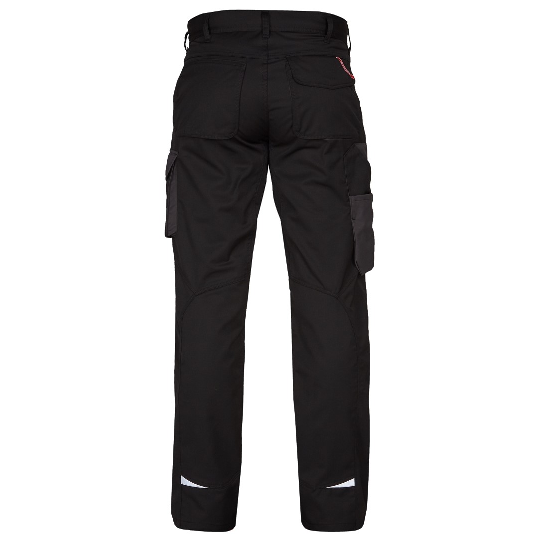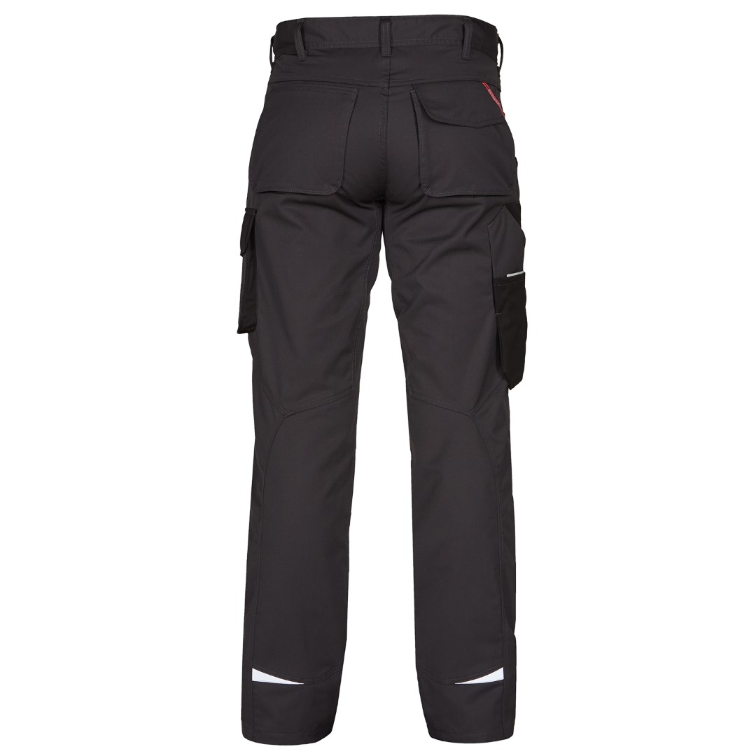 Funktionelle Arbeitshose mit vielen Details. Optimale Passform, u. a. sorgen ergonomisch geformte Knie und Panel an der Innennaht im Schritt für mehr Bequemlichkeit. Zwei geräumige, schräg sitzende Einschubtaschen vorne. Schlaufe mit D-Ring (vorne) zur Befestigung einer ID-Karte. Zwei geräumige Gesäßtaschen, die rechte mit Patte und Klettverschluss. Schenkeltasche mit Reißverschlusstasche fürs Handy, zusätzliche kleine Tasche. Zollstocktasche mit zusätzlichen Fächern. Die Zollstocktasche hat einen freihängenden Boden. Reflexstreifen unten an den Hosenbeinen für mehr Sichtbarkeit. Für Industriewäsche geeignet.