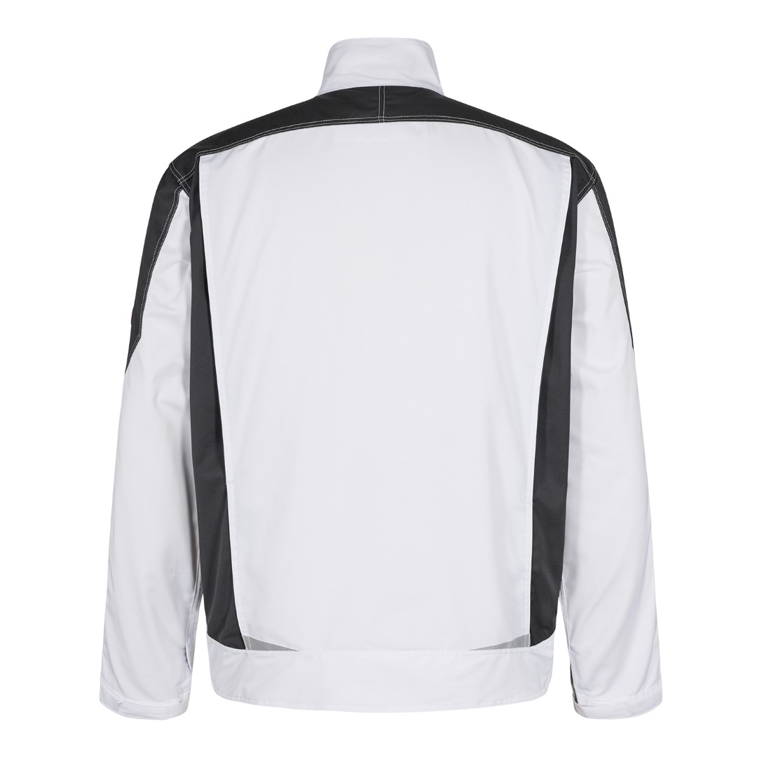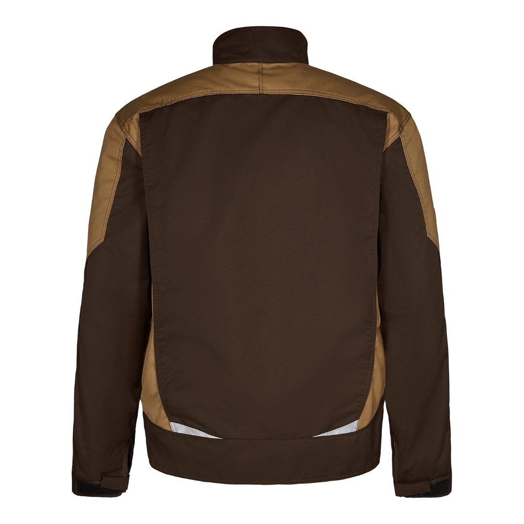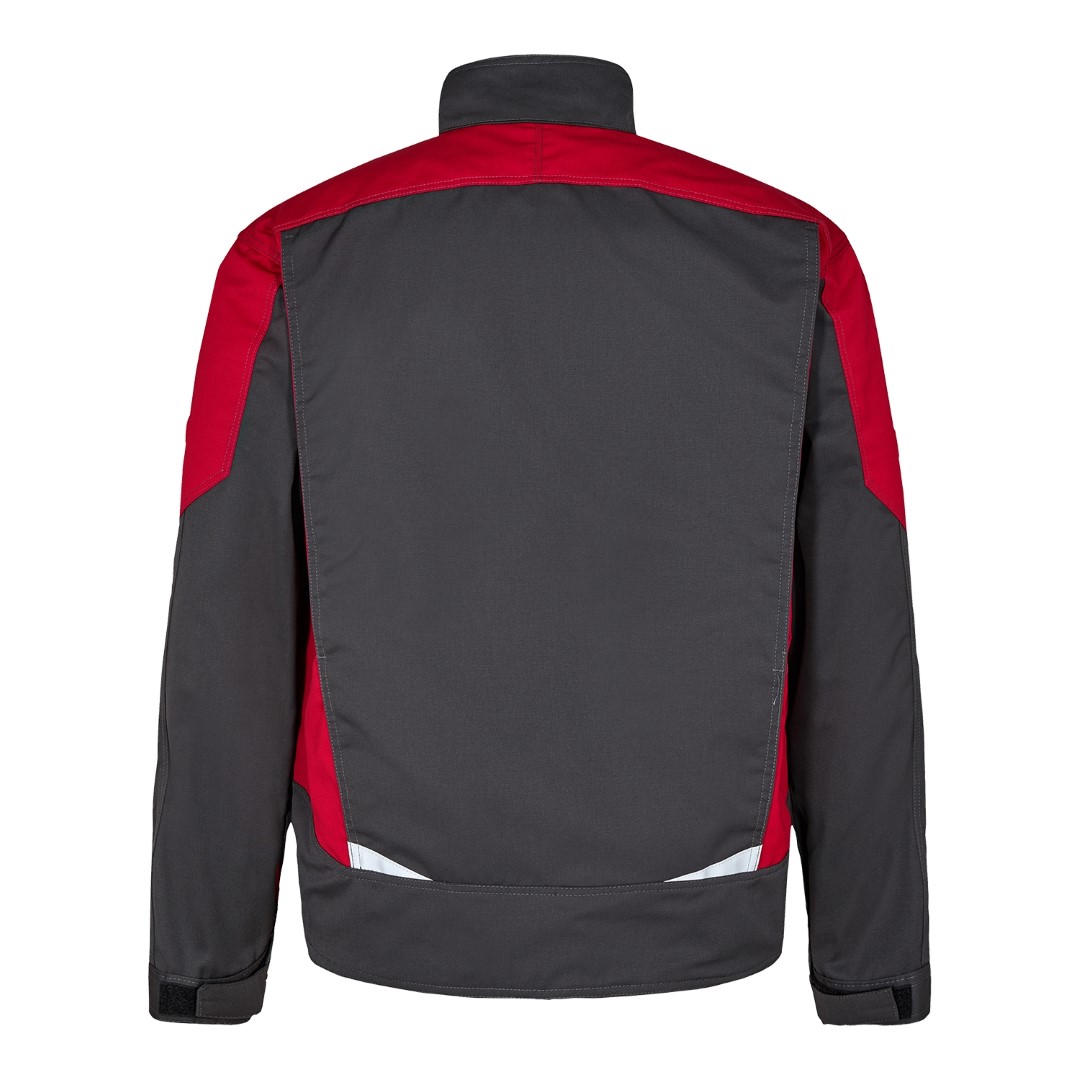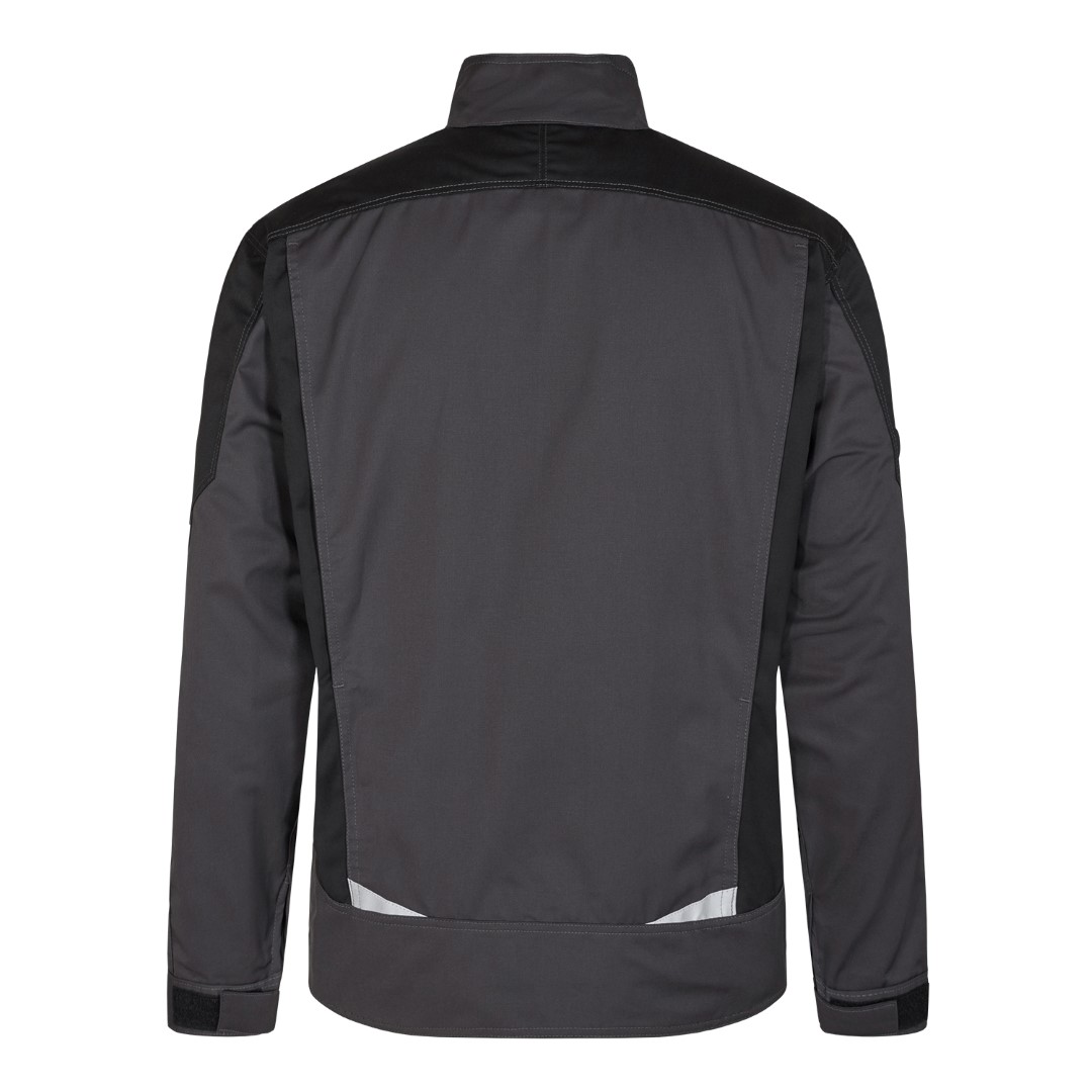 Funktionelle Arbeitsjacke mit vielen Details. Verlängerte Rückenpartie mit Bewegungsfalte. Verdeckter Reißverschluss vorn. Zwei geräumige Einschubtaschen. Zwei Brusttaschen mit Patte – rechts, mit Schlaufe und D-Ring zur Befestigung einer ID-Karte und mit zusätzlicher Reißverschlusstasche fürs Handy. Zwei große Innentaschen mit Klettverschluss. Verstellbare Ärmelbündchen. Reflektoren vorne und am Rücken für mehr Sichtbarkeit. Für Industriewäsche geeignet.