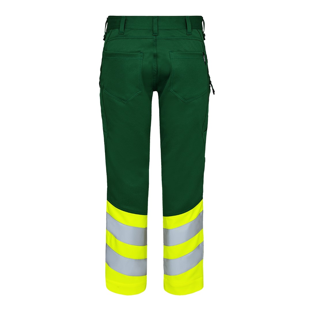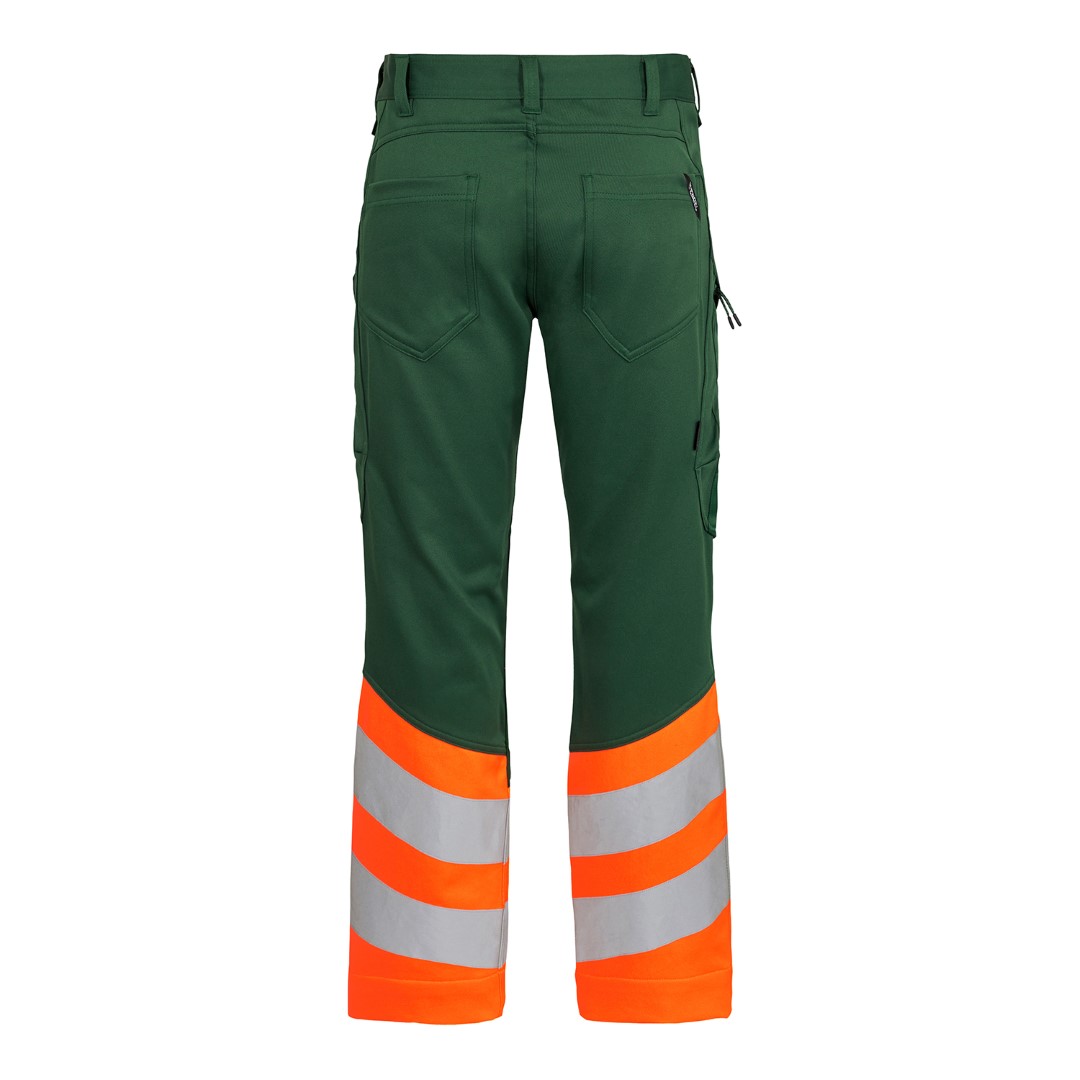 Dehnbare, funktionelle und fluoreszierende Bundhose im modernen Design. Optimale Passform mit u. a. ergonomisch geformtem Kniebereich. Der dehnbare Stoff sorgt für optimale Bewegungsfreiheit und Komfort. D-Ring vorne für die Befestigung von z. B. Ausweisen. Zwei geräumige Schrägtaschen vorne. Zwei Gesäßtaschen. Zwei Schenkeltaschen mit Reißverschluss. Die linke Schenkeltasche hat eine zusätzliche Handytasche. Die rechte Schenkeltasche hat eine aufgesetzte Zollstocktasche mit zusätzlichen Unterteilungen sowie eine Messertasche, beide Taschen sind verstärkt. Knieverstärkung/Knietasche mit Klettverschluss unten und besteht aus CORDURA®-Material. Reflexstreifen am Unterschenkel. Breiter Saum unten, der ausgelassen werden kann, wenn zusätzliche Beinlänge erforderlich ist. Um die Hose zu verlängern, muss lediglich eine Naht aufgetrennt werden. Das Hosenbein ist trotzdem noch gesäumt. Bekleidungsklasse 1. Nach 50-mal Waschen getestet.