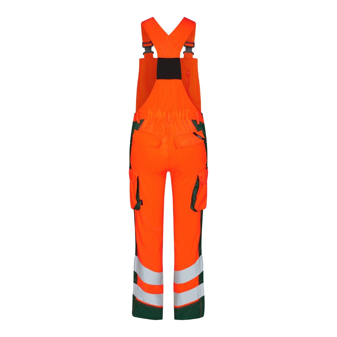 Funktionelle, fluoreszierende und Latzhose, speziell für Damen entworfen. Optimale Passform mit u. a. ergonomisch geformtem Kniebereich. Der Stoff ist strapazierfähig und atmungsaktiv und besteht zu 50% aus, recyceltem Polyester. Der elastische Taillenbund hinten sorgt für eine gute Passform und einen sicheren Sitz der Latzhose. D-Ring am Latz für die Befestigung von z. B. Ausweisen. Hoch geschnittenes Rückenteil und Rippstrickeinsätze an den Seiten sorgen für optimale Passform und viel Tragekomfort. Verstellbare Träger. Latztasche mit Taschenklappe und Klettverschluss. Die Latztasche hat innen eine Reißverschlusstasche. Zwei Schenkeltaschen mit Klettverschluss. Die linke Schenkeltasche hat eine zusätzliche Handytasche sowie eine Innentasche, z. B. für das Walkie-Talkie. Die rechte Schenkeltasche hat eine Innentasche für z. B. den Zollstock. Knieverstärkung/Knietasche mit Klettverschluss unten und Einstellmöglichkeiten zur Höhenverstellung des Kniepolsters. Die Knieverstärkung besteht aus besonders strapazierfähigem CORDURA®- Material. Reflexstreifen am Unterschenkel. Bekleidungsklasse 2. Nach 50-mal Waschen getestet.