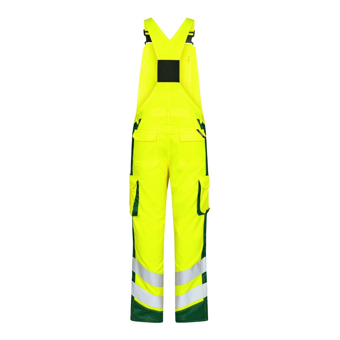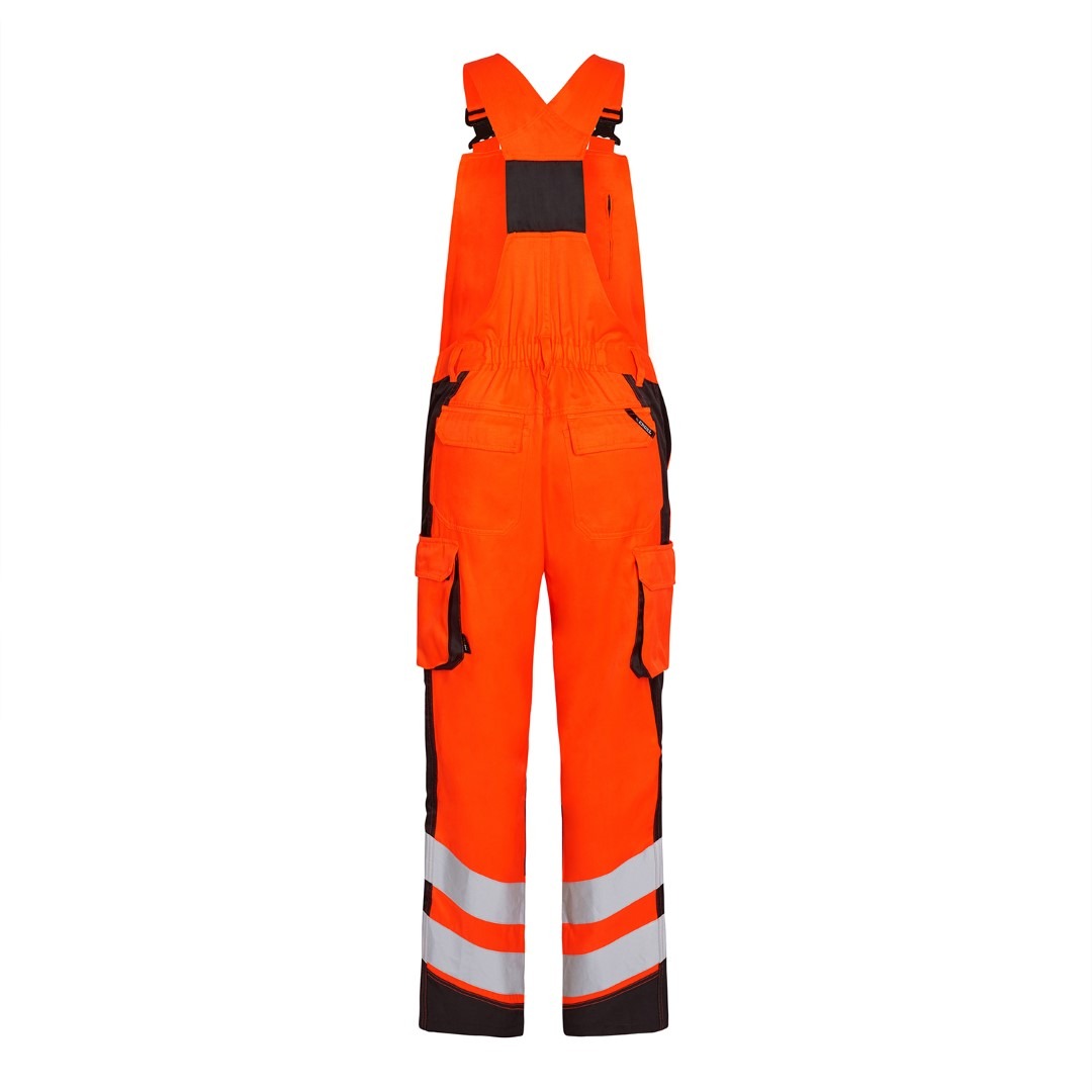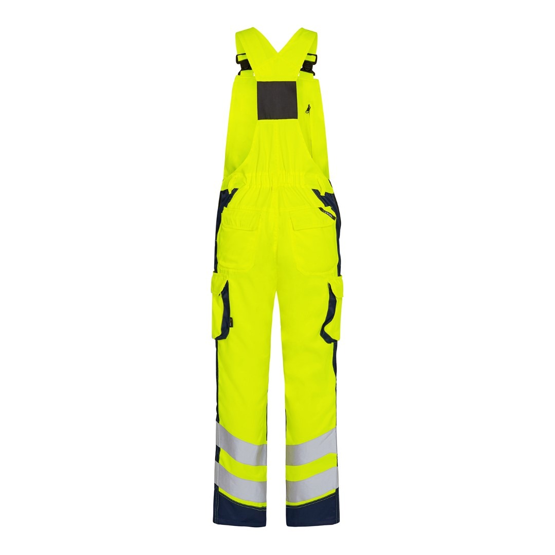 Funktionelle, und fluoreszierende Latzhose im modernen Design. Optimale Passform mit u. a. ergonomisch geformtem Kniebereich. Der Stoff ist strapazierfähig und atmungsaktiv und besteht zu 50% aus, recyceltem Polyester. Der elastische Taillenbund hinten sorgt für eine gute Passform und einen sicheren Sitz der Latzhose. D-Ring am Latz für die Befestigung von z. B. Ausweisen. Hoch geschnittenes Rückenteil und Rippstrickeinsätze an den Seiten sorgen für optimale Passform und viel Tragekomfort. Verstellbare Träger. Latztasche mit Taschenklappe und Klettverschluss. Die Latztasche hat innen eine Reißverschlusstasche. Zwei Schenkeltaschen mit Klettverschluss. Die linke Schenkeltasche hat eine zusätzliche Handytasche sowie eine Innentasche, z. B. für das Walkie-Talkie. Die rechte Schenkeltasche hat eine Innentasche für z. B. den Zollstock. Knieverstärkung/Knietasche mit Klettverschluss unten und besteht aus CORDURA®-Material. Reflexstreifen am Unterschenkel. Bekleidungsklasse 2. Nach 50-mal Waschen getestet.