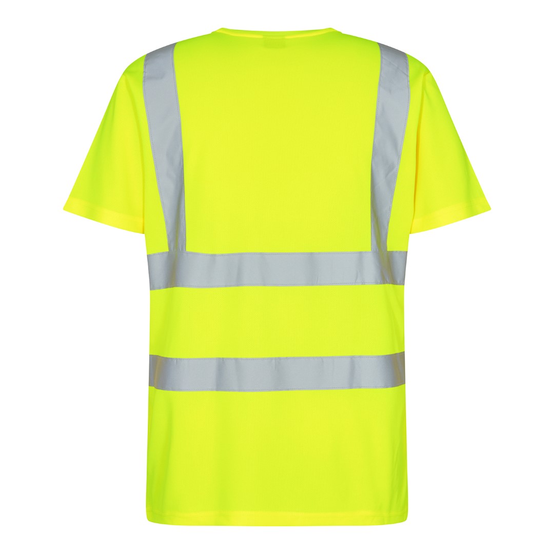 Bequemes und schickes, fluoreszierendes T-Shirt aus leichtem Material. Rippstrick am Hals sowie Tasche auf der linken Brustseite. Aufgenähte Reflexstreifen über die Schulterpartie hinweg sowie rund um die Taille. Bekleidungsklasse 2. Getestet nach 25 Wäschen.