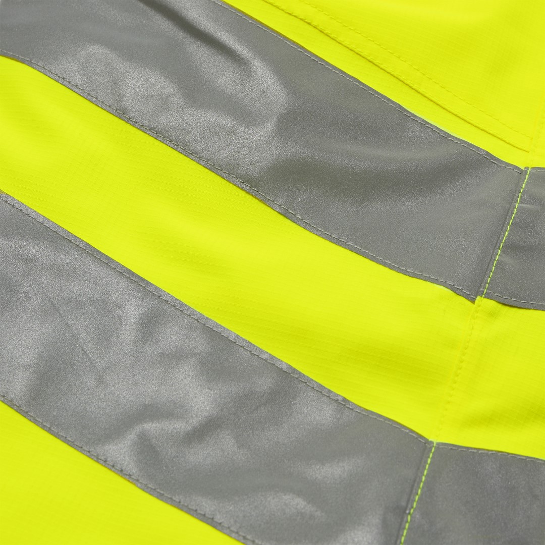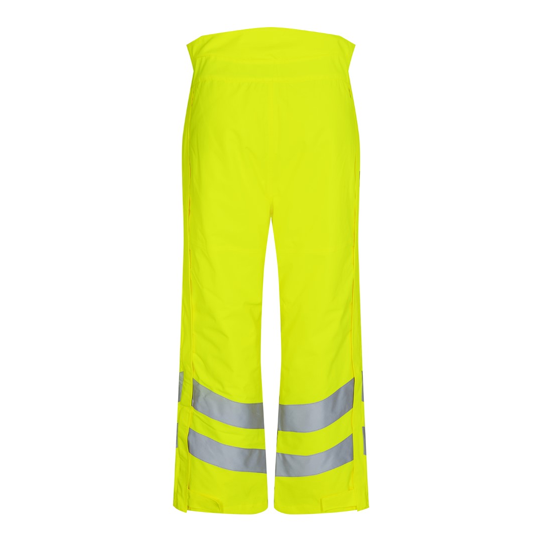 Fluoreszierende atmungsaktive, wasser- und winddichte Winterhose mit verschweißten Nähten. Zwei Fronttaschen mit Klettverschluss. D-Ring vorne für die Befestigung von z. B. Ausweisen. Extra hoher Lendenbereich und verstellbarer Gummizug in der Taille für maximalen Komfort. Verdeckter Zwei-Wege-Reißverschluss an den Beinen, der den Zugang zur Innenbekleidung ermöglicht sowie Schneefang/Windfang an den Beinen. Knieverstärkung. Reflexstreifen am Unterschenkel. Bekleidungsklasse 3. Nach 50-mal Waschen getestet.