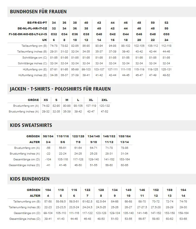 GRÖSSENTABELLE DAMEN & KINDERN