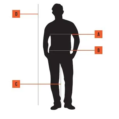 Perfekt sitzende Arbeitskleidung ist nicht nur komfortabel und funktionell, sondern macht Ihren Job auch sicherer! Messen Sie Ihre Größe anhand der Zeichnung, am besten direkt auf der Haut. Das Maßband sollte dabei gut anliegen, ohne einzuschneiden.