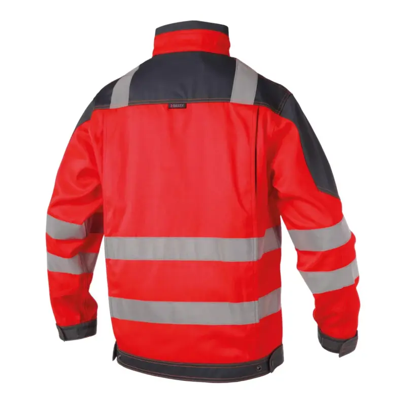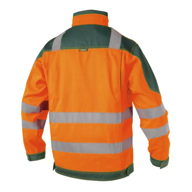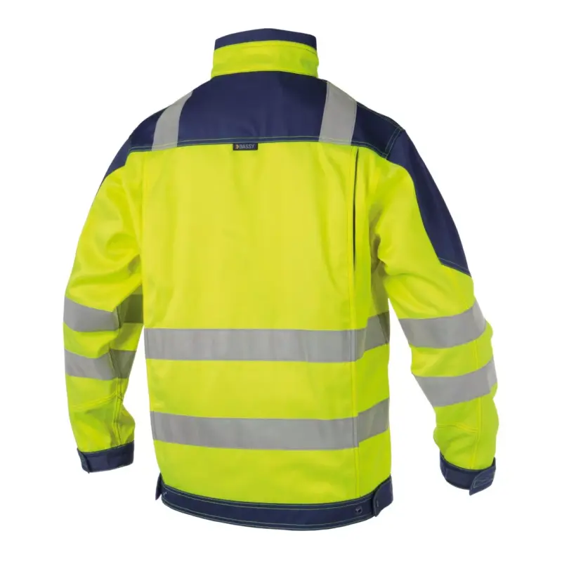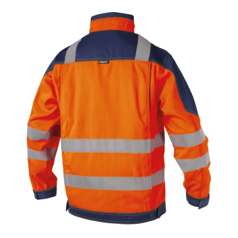 Dassy Orlando Warnschutz Jacke ist ideal für Arbeiten im Freien, denn sie bietet Schutz und Komfort. Sie hat einen verstellbaren Bund mit Druckknöpfen, einen verdeckten langen Reißverschluss mit Kinnschutz und Rückendehnfalten für mehr Bewegungsfreiheit. Der Rücken ist verlängert, um die Nieren zu wärmen. Die Taschen sind mit Cordura® verstärkt, um Abnutzung zu vermeiden. Die Jacke hat zwei Schubtaschen und eine Brusttasche mit Reißverschluss, eine Brusttasche mit Ausweishalter, eine Innentasche, eine Handytasche und ein Stiftefach. Die 50 mm-Reflexstreifen sorgen für gute Sichtbarkeit bei Dunkelheit. Die Jacke ist aus hochwertigem Material gefertigt, das doppelt gekappt und mit Kontraststickerei verziert ist. Die Jacke ist nach OEKO-TEX® Standard 100 auf Schadstoffe geprüft.